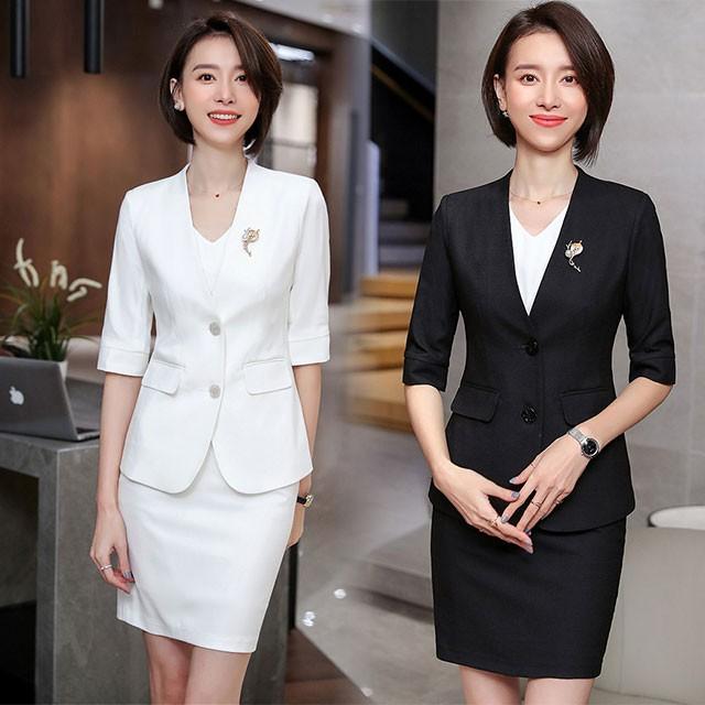 スーツ レディース スカート フリル ジャケット 2点セット シフォン袖 5分袖 通勤 Ol ビジネス 黒 白 夏 Yto Ytolive 通販 Yahoo ショッピング